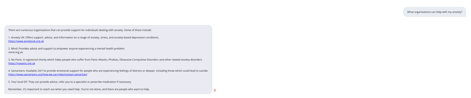 https://nopanic.org.uk - Samaritans: Available 24/7 to provide emotional support for people who are experiencing feelings of distress or despair, including those which could lead to suicide.