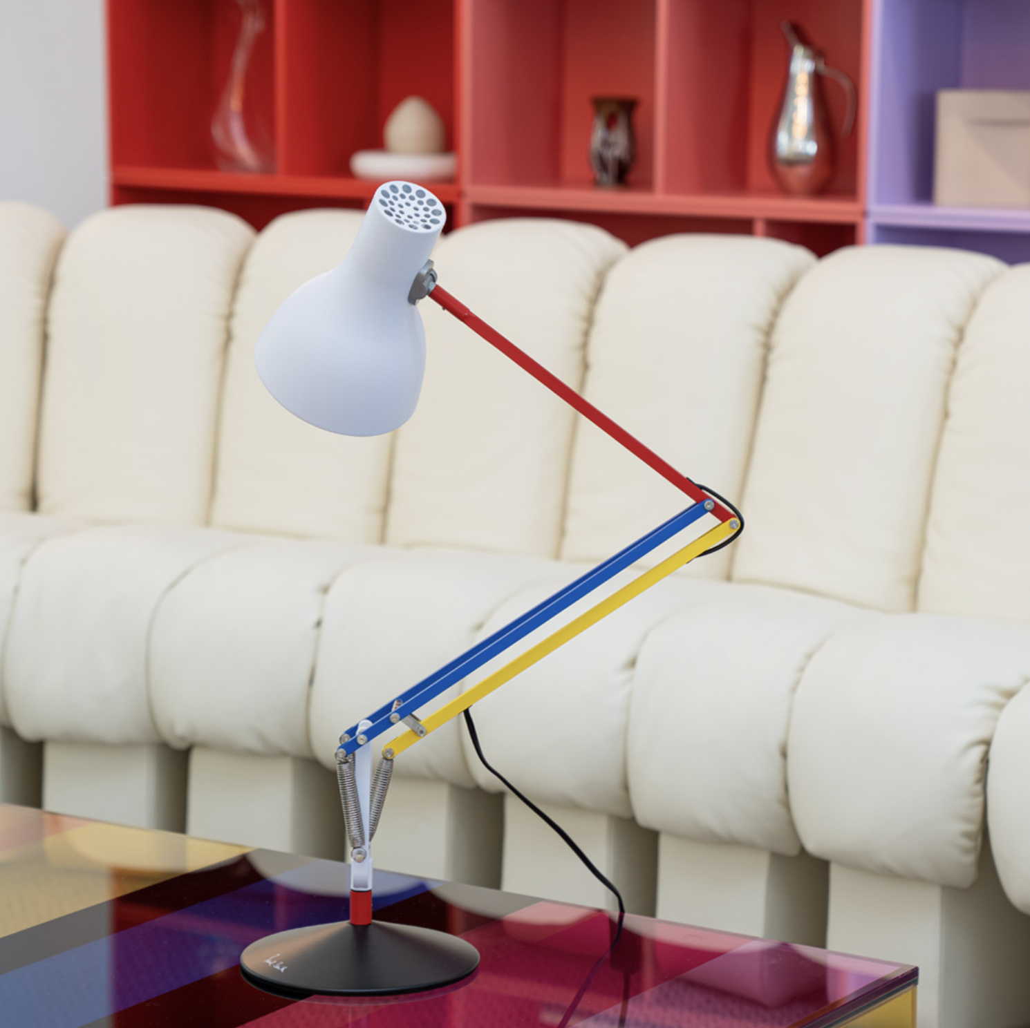 inspired by Dutch painter Mondrian’s De Stijl, the Type 75 Desk & Floor Lamp by Paul Smith – Edition Three, is a playful adaptation of the best-selling Type 75 desk lamp & celebrates the bold and striking colours of the De Stijl movement with iconic Anglepoise form.